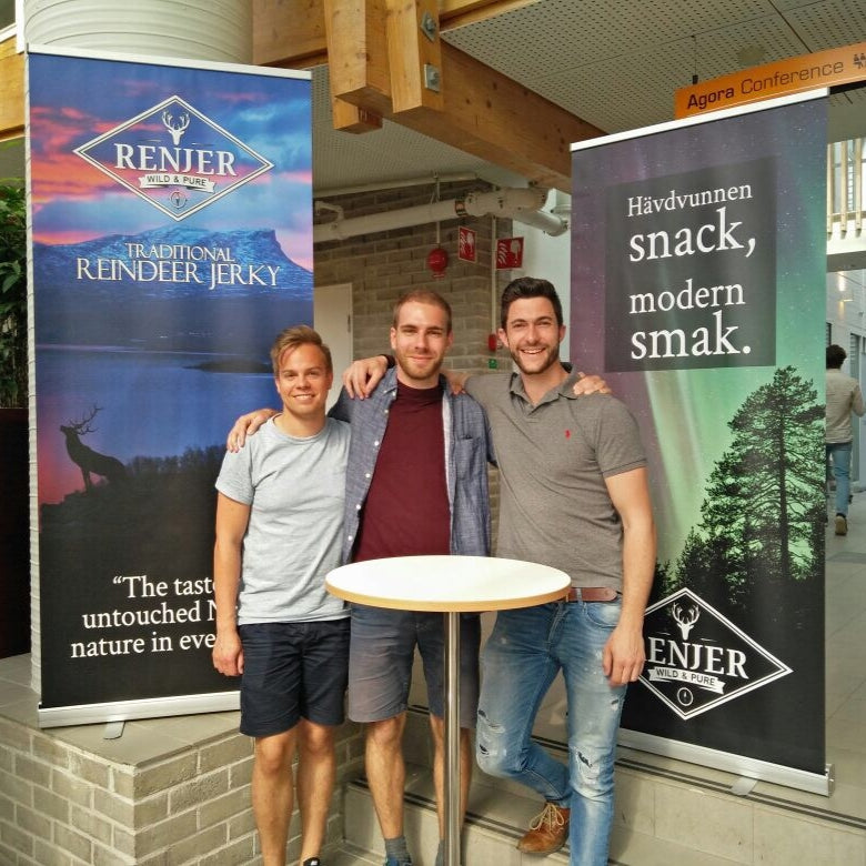 Die drei Jungs Anton, Alex und Tim, die ihren Master in Entrepreneurship und Innovation machen, trafen sich und hatten die Geschäftsidee, einen Jerky-Snack aus Rentierfleisch zu entwickeln. Am Ende ihres Studiums setzten sie ihre Geschäftsidee in die Tat um.